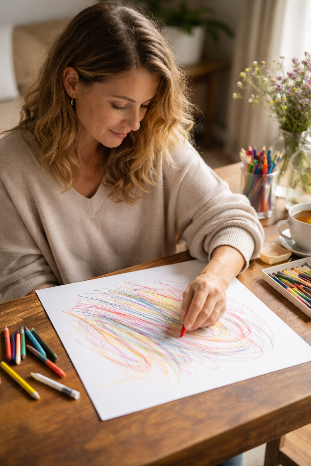 Using your non-dominant hand in art therapy helps women access emotions, inner parts and healing, allowing authentic expression beyond words and self-trust.